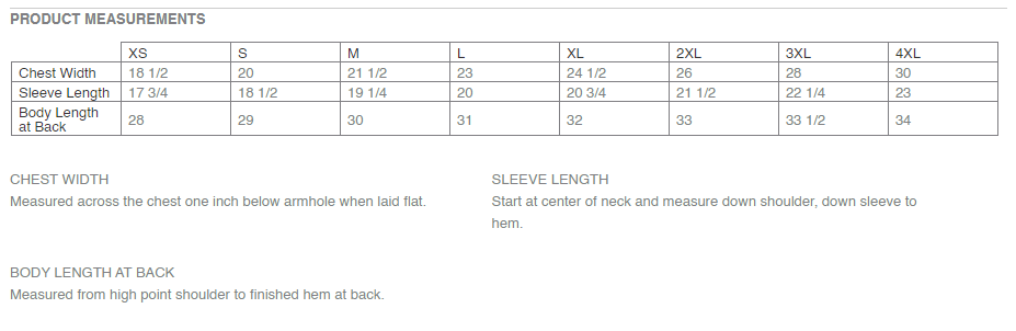 S, M, L, XL, 2XL, 3XL, 4XL